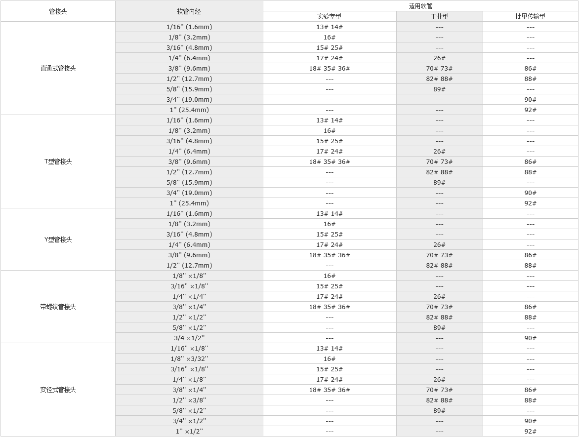 蘭格公司提供以下四種材料的蠕動泵管接頭,可以完美的與軟管系統(tǒng)相連并保證液體流動的通暢。