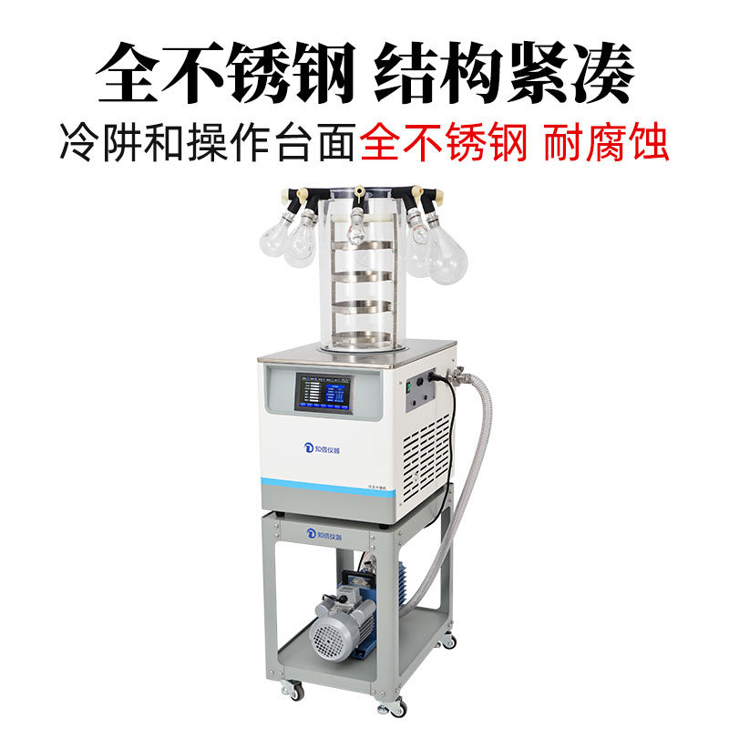 冷凍干燥機(jī)是將含水物品預(yù)先凍結(jié),然后使其水分在真空狀態(tài)下升華而獲得干燥物品的一種技術(shù)方法。經(jīng)冷凍干燥后物品理化性質(zhì)、生物特性基本不變,易于長期保存,復(fù)水后物品能迅速恢復(fù)到凍干前的形態(tài),并且能保持其原有的生化特性。因此,冷凍干燥機(jī)在化工、食品、醫(yī)藥、生物等制品的制備和檢測(cè)領(lǐng)域得到廣泛應(yīng)用。