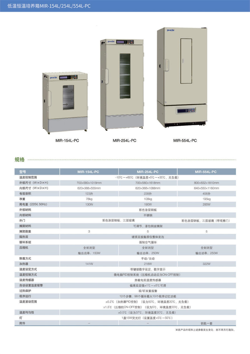 特點…… 帶指示燈的計時控制;裝配有帶日光燈(15Wx1個)的開關(guān)程序計時控制器;精確穩(wěn)定的溫度環(huán)境 另通過燈照組件(MIR-L15)在箱體頂部加裝3個或更 ;多燈管,在光源下30cm,可達約3000lx?!の㈦娔X溫度控制:低溫恒溫培養(yǎng)箱搭載高精度微電 ·關(guān)注環(huán)境 ;