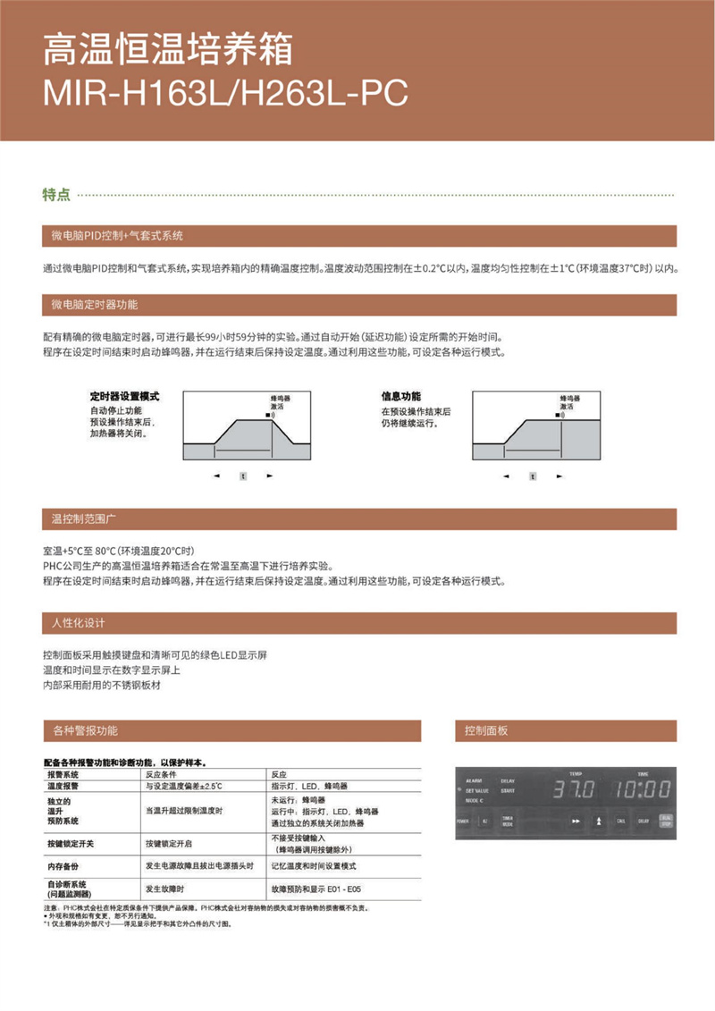 微電腦定時(shí)器功能;配有精確的微電腦定時(shí)器,可進(jìn)行最長(zhǎng)99小時(shí)59分鐘的實(shí)驗(yàn)。通過自動(dòng)開始(延遲功能)設(shè)定所需的開始時(shí)間。程序在設(shè)定時(shí)間結(jié)束時(shí)啟動(dòng)蜂鳴器,并在運(yùn)行結(jié)束后保持設(shè)定溫度通過利用這些功能,可設(shè)定各種運(yùn)行模式定時(shí)器設(shè)置模式 蜂鳴器 信息功能 蜂鳴器 自動(dòng)停止功能 激活 在預(yù)設(shè)操作結(jié)束后 激活 預(yù)設(shè)操作結(jié)束后 仍將繼續(xù)運(yùn)行。 加熱器將關(guān)閉。