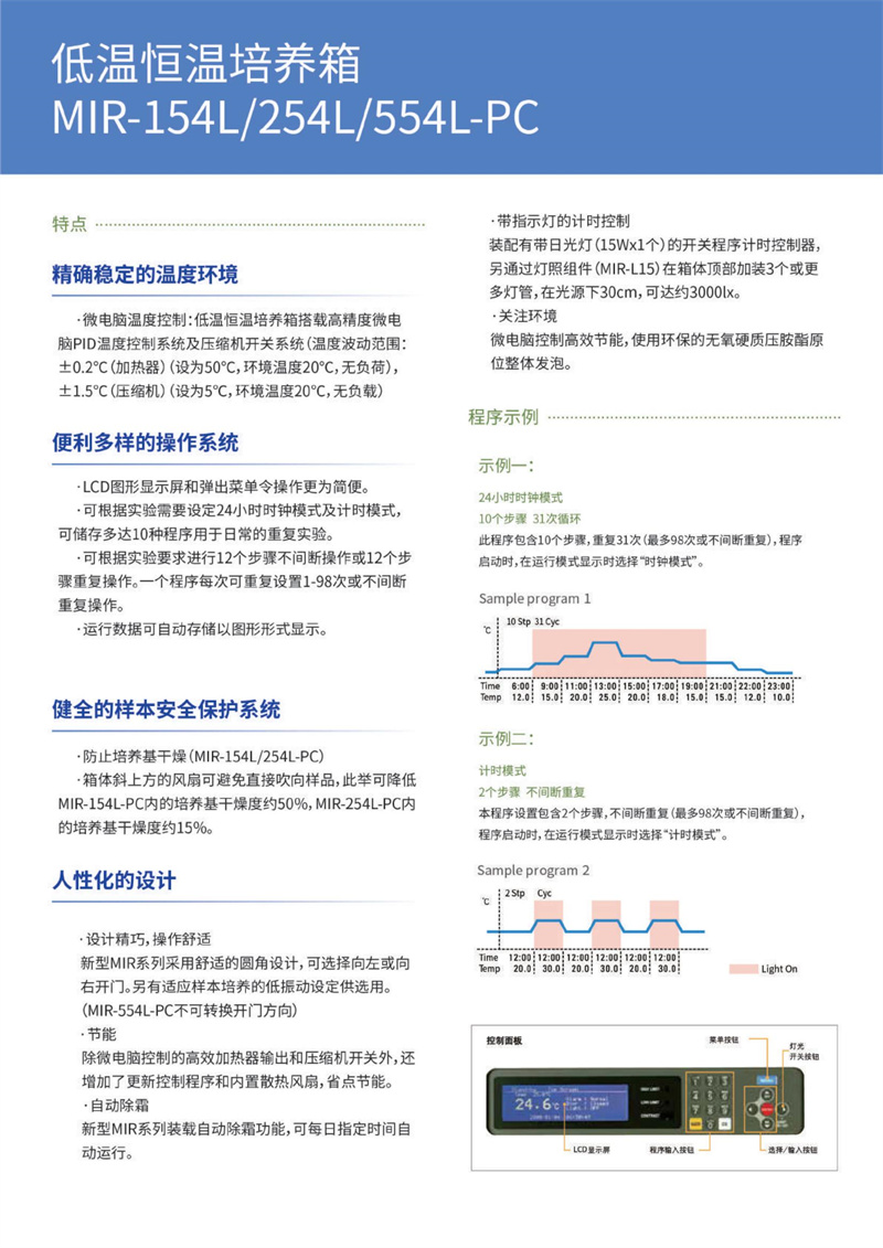 微電腦PID控制+氣套式系統(tǒng);通過微電腦PID控制和氣套式系統(tǒng),實(shí)現(xiàn)培養(yǎng)箱內(nèi)的精確溫度控制。溫度波動(dòng)范圍控制在土0.2℃以內(nèi),溫度均勻性控制在土1℃(環(huán)境溫度37℃時(shí))以內(nèi)。