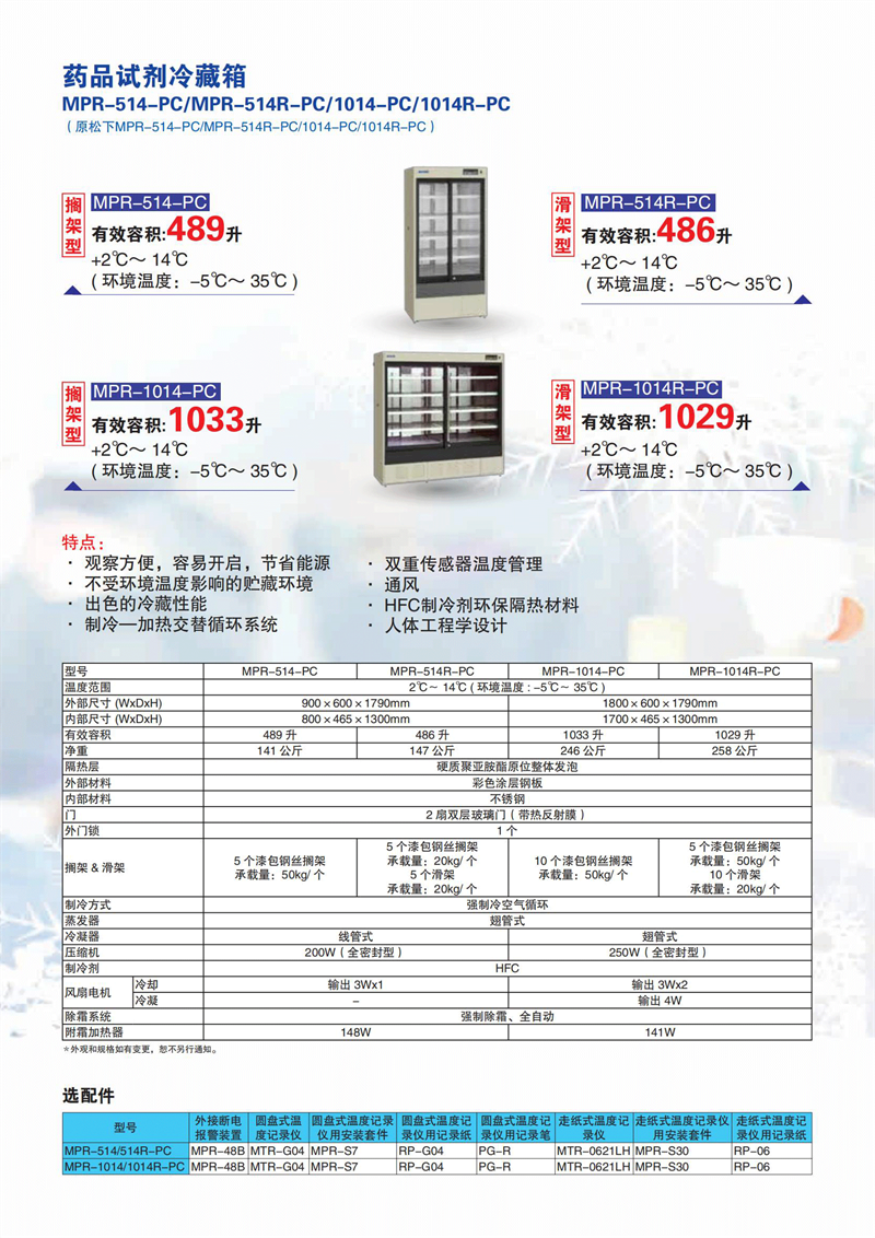 特點(diǎn): 電加熱器保持箱內(nèi)溫度恒定 箱內(nèi)溫度穩(wěn)定、均勻且可控,不受環(huán)境溫度的影響。 型 擱 架 MPR-1411PC 有效容積:1364升 ,可靠的報(bào)警及安全功能,可防止箱內(nèi)的溫度不規(guī)則波動(dòng)。