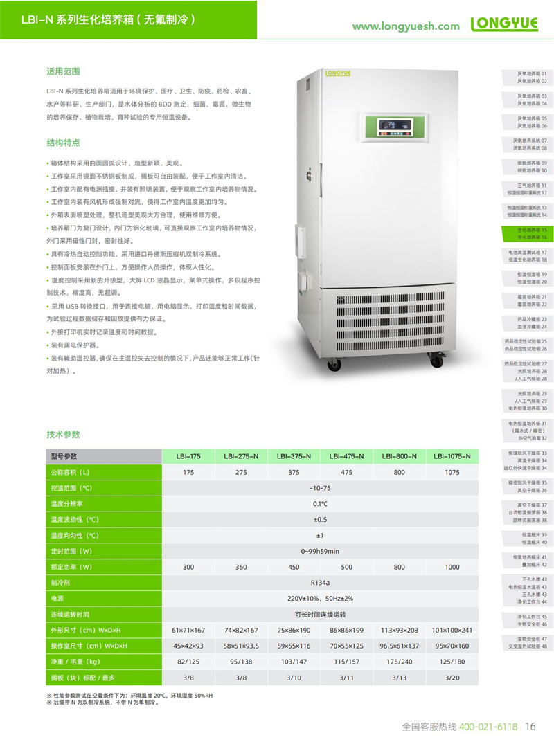LBI-N 系列生化培養(yǎng)箱適用于環(huán)境保護(hù)、醫(yī)療、衛(wèi)生、防疫、藥檢、農(nóng)畜、水產(chǎn)等科研、生產(chǎn)部門,是水體分析的 BOD 測(cè)定、細(xì)菌、霉菌、微生物的培養(yǎng)保存、植物栽培、育種試驗(yàn)的專用恒溫設(shè)備。
