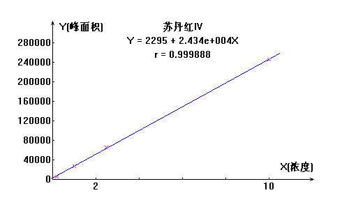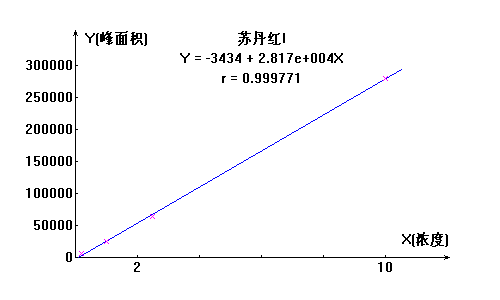 蘇丹紅I號(hào)工作曲線見下圖,線性相關(guān)系數(shù):0.9997